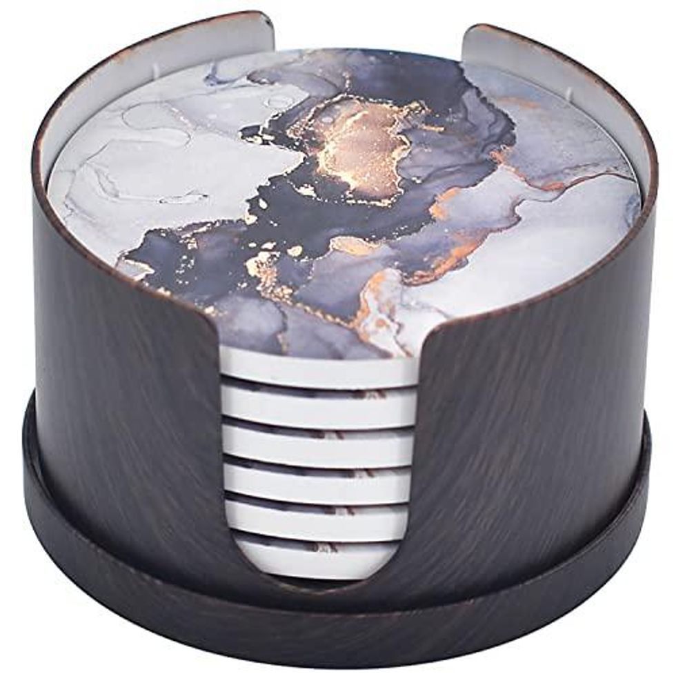A coaster is a must have for any home. None of us want to deal with those pesky rings on our table from our coffee and water cups. This pretty marble set is a great option that look pretty all stacked up together.