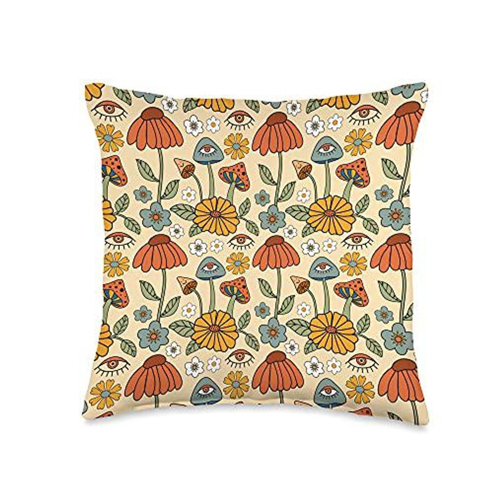 I am so in love with this retro inspired throw pillow. It has those perfect old school colors with trippy flowers, mushrooms, and eyes. It is a great way to bring the retro vibes into your living room or bedroom.