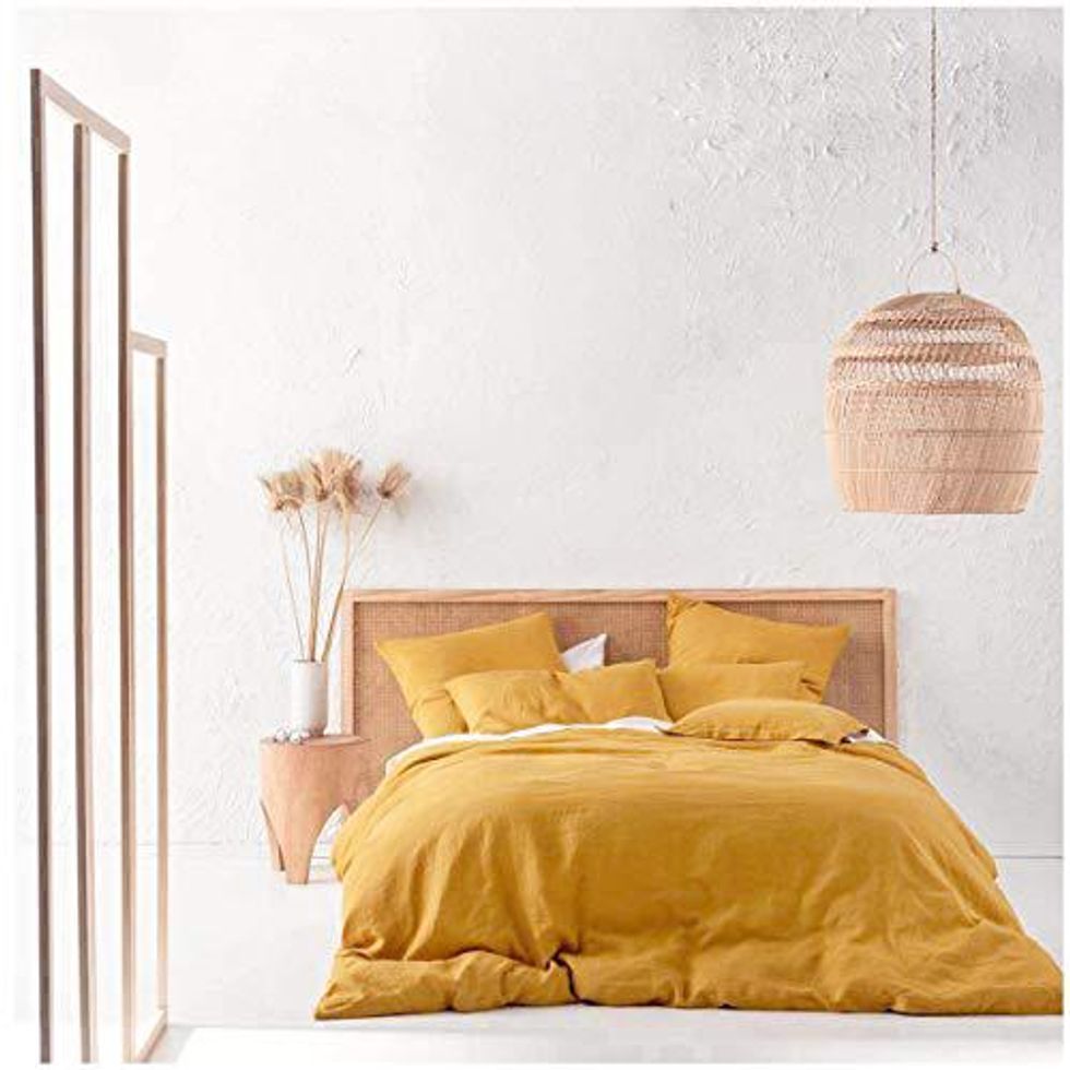 There is this very specific kind of wrinkled look that is very on-trend for bedding right now. It comes with the rise in linen sheets. It's great because it's a little more low-key and laid-back. This gorgeous yellow bedding set is a pretty option to add a pop of color to the bedroom.