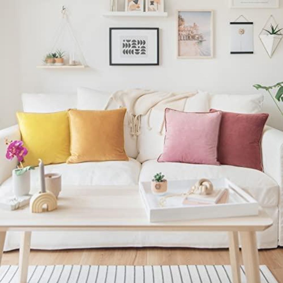 A good way to move your home to spring without being too obvious about it is by adding more color into your spaces. A super easy way to make that happen is with some new throw pillow covers. This set comes with four different bright shades in the softest velvet. It's a great way to brighten things up with minimal effort.