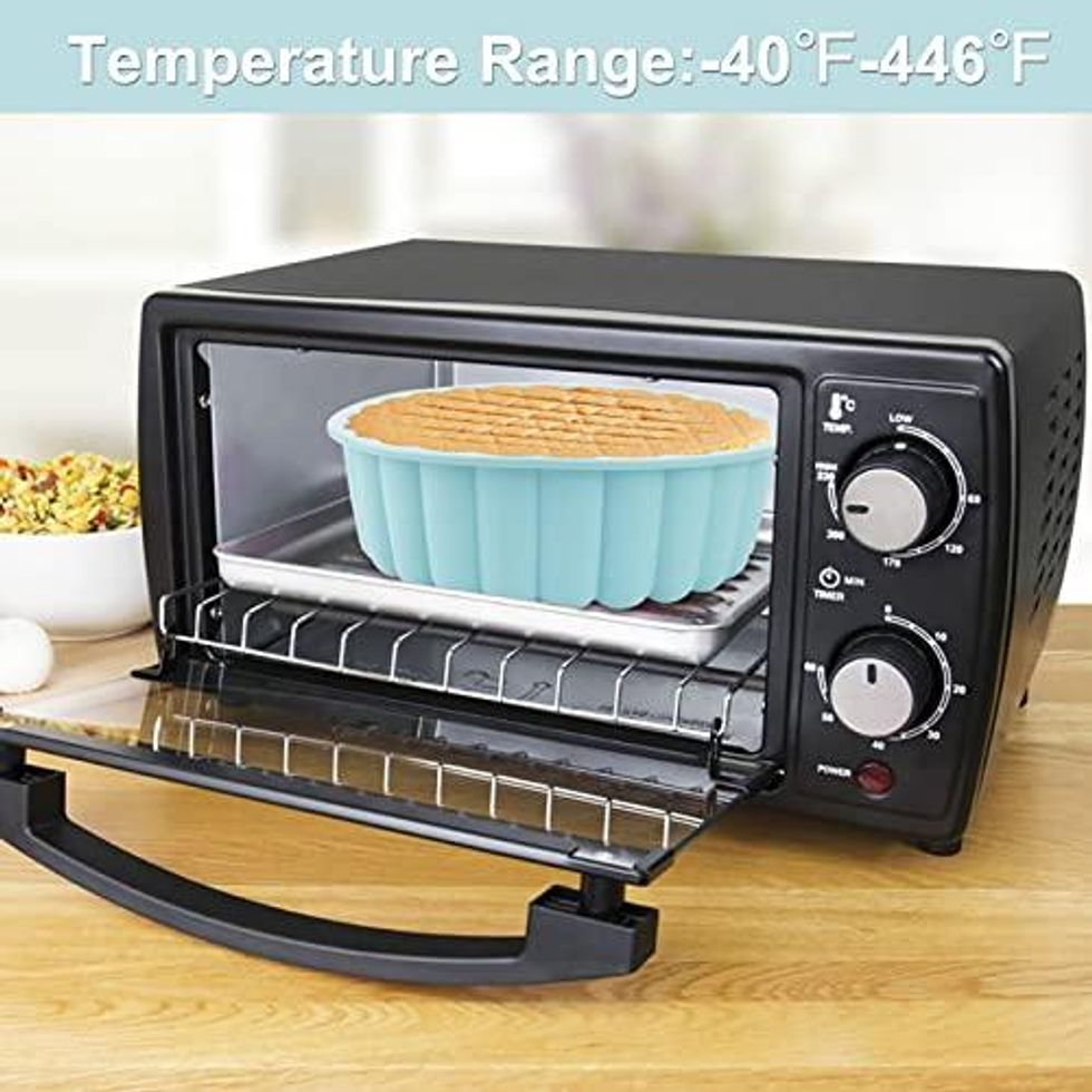 The Silicone, Nonstick, 8-inch Round Mold is suitable for cakes, pies, bread, or even Jello! The flexible mold is made of food-grade silicone and is BPA-free. It's temperature resistant from -40 degrees F to 446 degrees F and is "completely safe to use in the freezer, oven, microwave, and dishwasher."