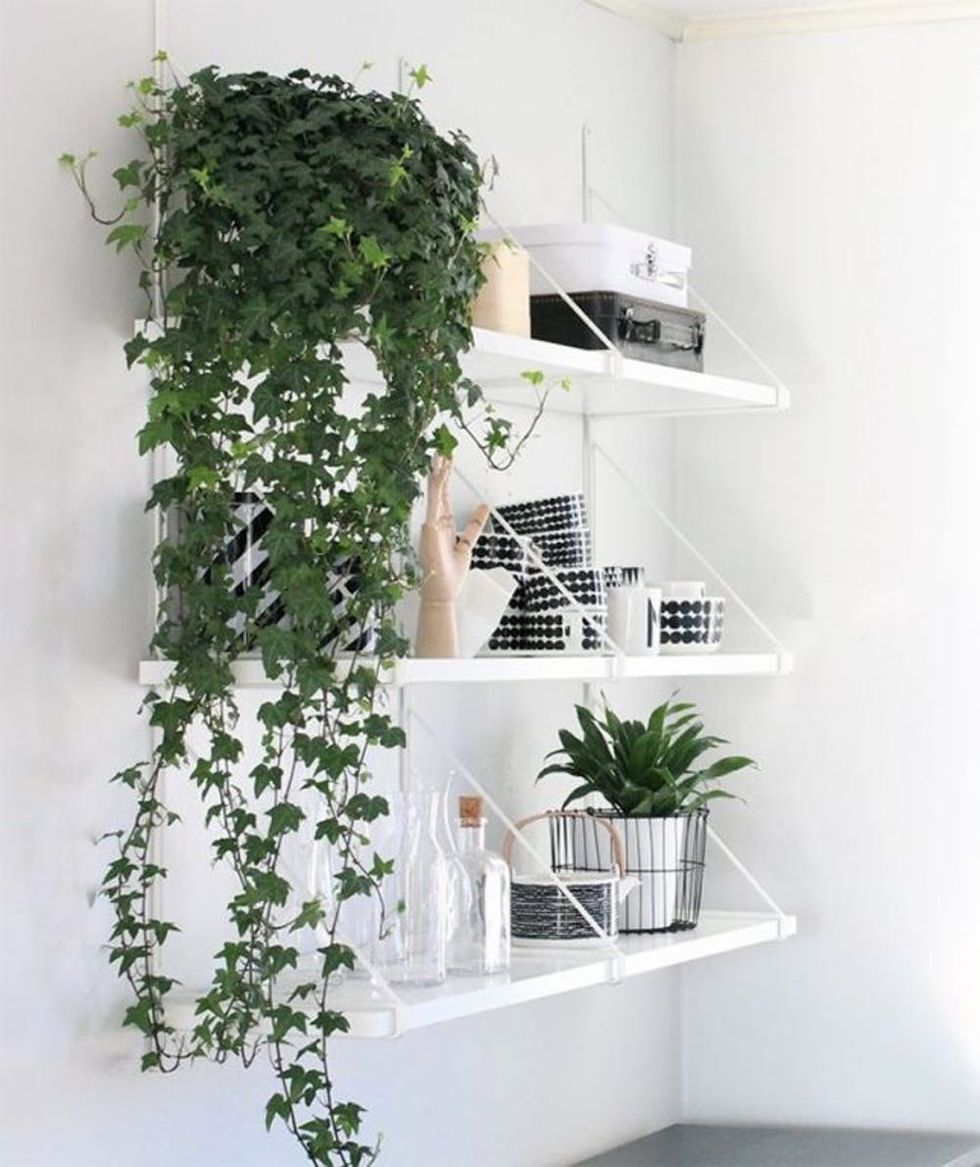 13. Drama Overflow: A cascading plant brings major drama to a simple setup. Just be sure to keep the accent trimmed before it makes its way to the floor. (via Home & Decor)