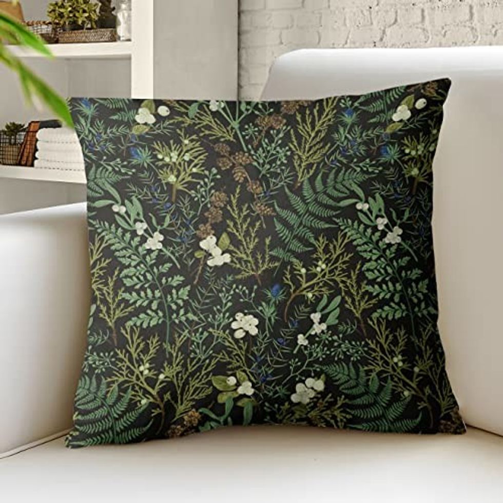 Deep green foliage against a black backdrop brings bold, organic contrast to your seating. These vintage-inspired botanical pillow covers layer beautifully into a moody space, adding a touch of natural drama that feels both grounded and luxurious.