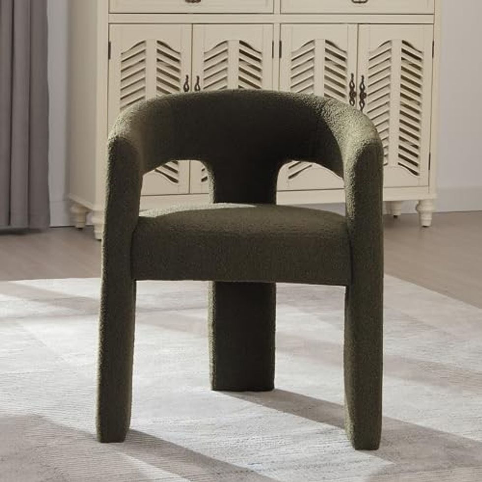 Rich in color, this green faux fur barrel chair brings a playful yet polished element to any moody interior. Its cozy texture and curved form invite relaxed lounging.