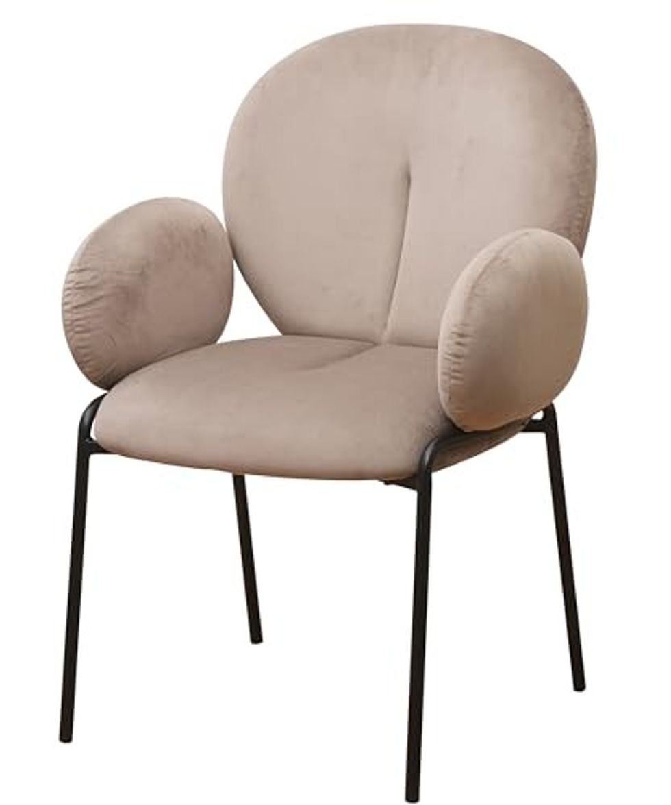 Wrapped in soft gray velvet with sleek metal legs, this armchair blends plush comfort with modern edge. Its tailored silhouette and moody tone make it an effortless addition to your cocktail space.