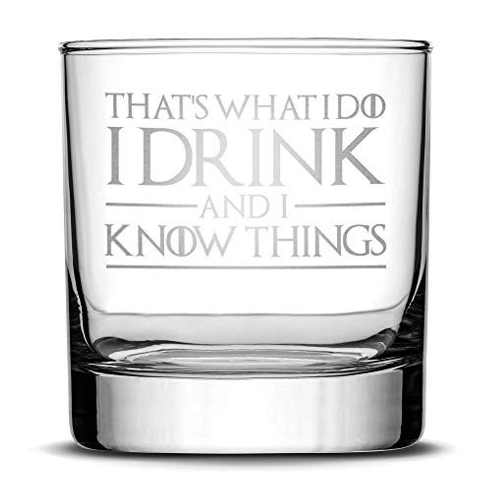 This whiskey tumbler is the perfect addition to any Game of Thrones fan's collection. With the iconic Tyrion Lannister quote, "That's what I do. I drink and I know things," this tumbler is not only amazing and perfect but also a great holiday gift for the Game of Thrones and alcohol enthusiast in your life. Bonus points if their favorite character is Tyrion Lannister (as it should be).