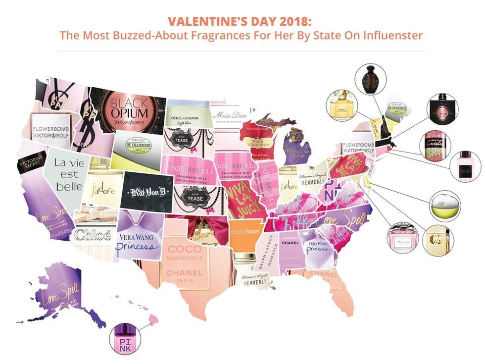 Beauty product review site Influenster gathered information from more than a whopping 250,000 organic reviews, with the majority of reviewers (45 percent) falling into the 18 to 24 age bracket. From there, they broke down their top fragrance review findings by state (similar to the study Fragrance.com did last year) for Valentine’s Day. While we might have expected Kim Kardashian West’s Crystal Gardenia fragrances (which sold a whopping $10 million in the first day alone), to lead the pack, it was actually a classic old school brand that took home top honors when it came to review count.