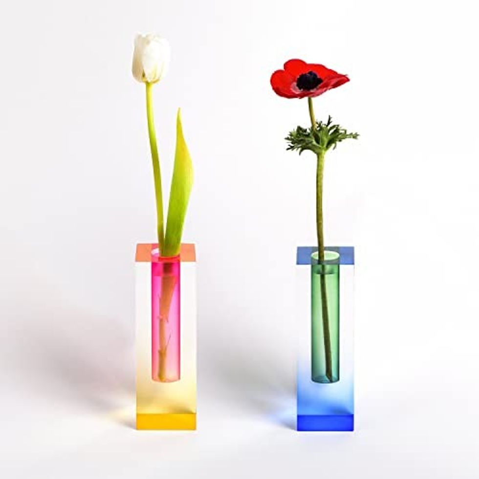 Kick your boring glass vases to the curb when you bring home these stellar rainbow acrylic flower holders that make a bold statement as a centerpiece!