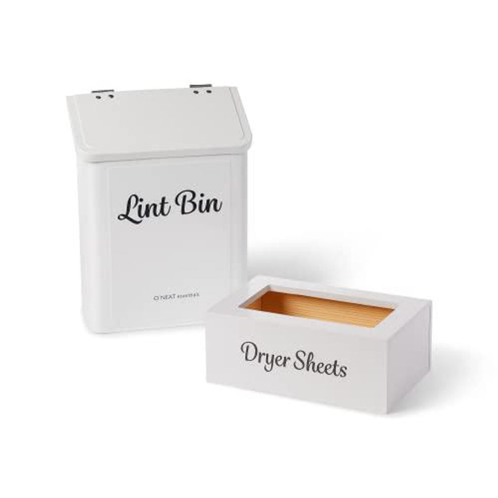 My laundry room is probably the last place that I would take a picture to share to Insta. Who wants to see my dryer sheets and lint? Well everyone will once I snag these absolutely adorable storage boxes specifically designed for the laundry room. There's one for disposing of your lint and another for storing your dryer sheets, labeled in a lovely font. I need everyone to look at my laundry room please.