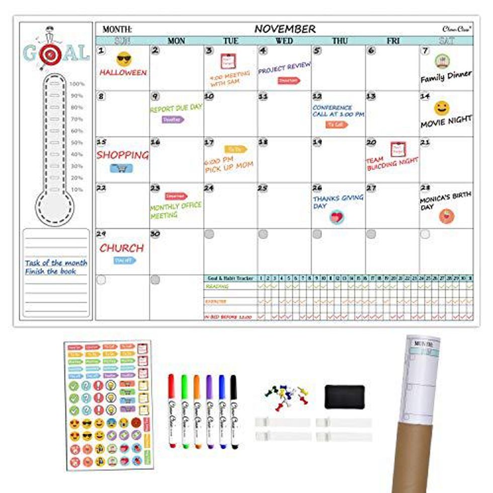 Everyone wants to be organized, but few people find it easy. One of the best ways to fight that entropy is with a habit tracker: few things are more helpful than setting goals and taking small steps to reach them. If you want to display those goals and habits in a crafty, colorful, aesthetic way, this dry erase calendar will do just the trick. It has extra spaces for habits and goals, and even comes with colorful stickers.