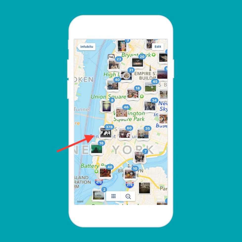 Next, tap in as close or as far as you want to where you live. As you can see, the number of photos you post from a location shows in a blue bubble above the photos. It’s highly likely that the area with the highest number of photos is where you live.