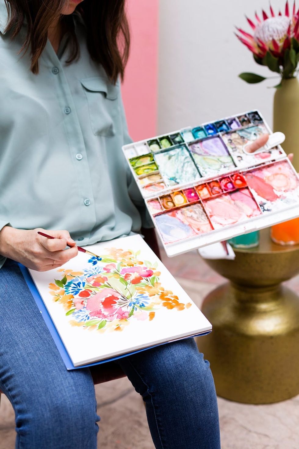 Watercolor is one of the most meditative, colorful, and whimsical mediums around. It can also be one of the most difficult, especially when you’re ready to graduate from dots, dashes, and washes to more advanced techniques. That’s why we teamed up yet again (third time’s the charm!) with artist and designer Jenna Rainey to create a brand-new watercolor class for all y’all who are ready to take your painting skills to the next level.