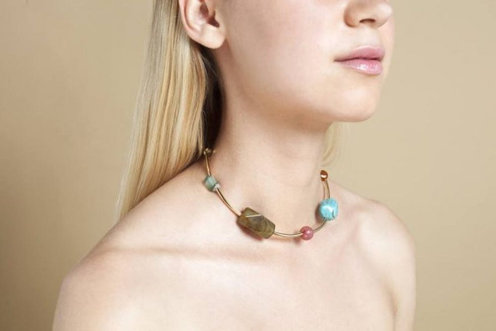 3. Sculptural Spanish Jewelry: Thanks to their storied artistic and architectural culture that includes the likes of Gaudí and Miró, it’s no surprise that sculptural jewelry is all the rage in Spain. Etsy shop BayaBayaBaya specializes in these baubles, like this natural stone and gold-plated choker ($47).