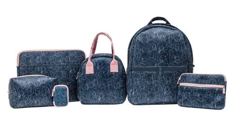 The pattern on this collection is made up of women of different shapes, sizes and cultural backgrounds to represent unity in sisterhood. In the collection, you'll find a backpack, lunch tote, large cosmetic tote, earbud case, tech organizing pouch, and laptop sleeve.