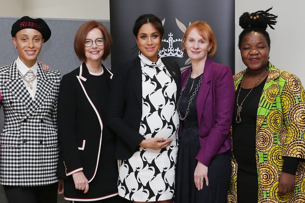 Meghan Markle: The Duchess of Sussex took part in a panel discussion with fellow female leaders and activists Annie Lennox, Adwoa Aboah, Julia Gillard, Angeline Murimirwa, and Chrisann Jarrett. Kensington Palace also announced on Friday that Markle has been appointed Vice President of The Queen’s Commonwealth Trust. (Photo via Daniel Leal-Olivas/WPA Pool/Getty Images)