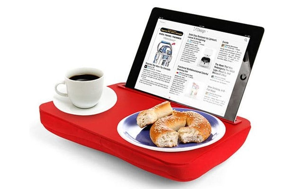 6. iPad Bed & Lap Stand ($30): This funny little bean bag cozies right up to your iPad to keep it standing up when you want to watch a movie on your bed or couch. We love that the bag part of it doubles as a storage area for headphones, power cords, and what not.