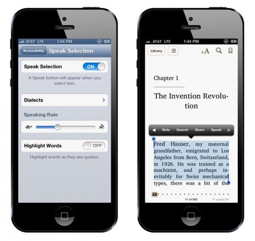 4. Turn an E-Book into an Audiobook: This is definitely on the extremely hacky end of the spectrum. Go to Settings on your phone, then choose Accessibility. Turn Speak Selection on. Then, open your book and select all the copy you want to hear. You’ll see a menu bar that has options like Copy and Highlight. Scroll to the right and you’ll see Speak. Amazing!