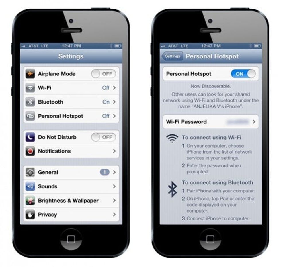 5. Make Your Phone a Hotspot: What is a hotspot? It’s wifi, powered by your phone! It costs around $10 a month to be able to do this, and lets you connect to the data network on your phone via Bluetooth. It’s great if you’re traveling and need to use your computer or iPad to look at or send something, especially when airport wifi fails. Warning: This uses up a TON of battery power, so be sure to charge it up.