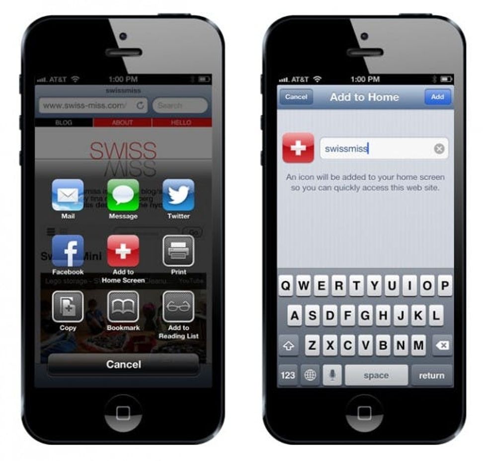 13. Create an “App” out of a Website: Think of it as “save to desktop” for your phone. When you’re on a website in Safari, press the icon that looks like a share (an arrow in a box) button and you can choose to save that website to your home screen.