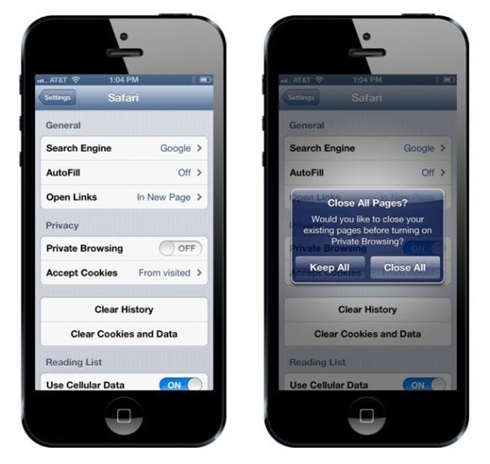 19. Private Browsing:If you are worried about Apple having all of your browsing information on file in some secret database, simply activate private browsing. To do this, go to Settings, then choose Safari, and turn Private Browsing on.