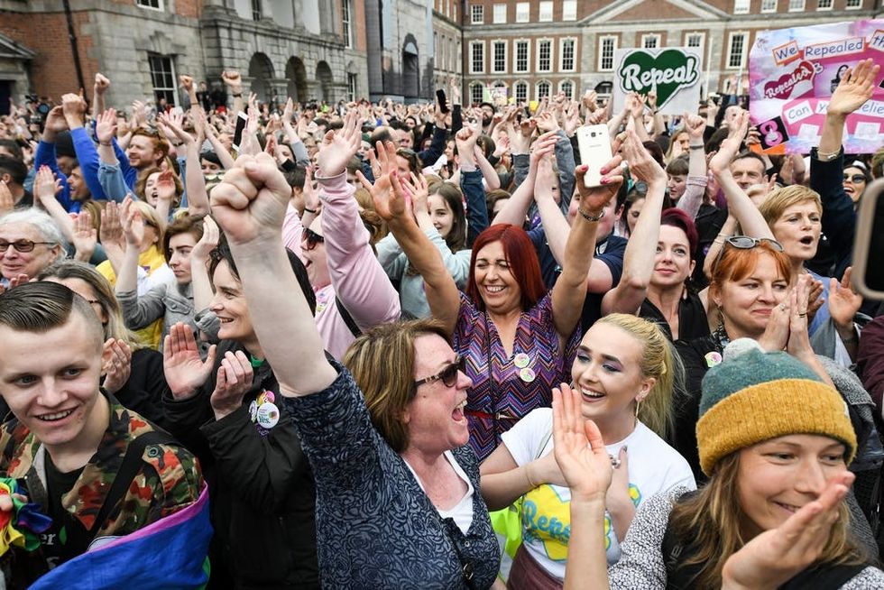 Huge crowds of the repeals supporters, some of whom flew home from overseas to participate in the vote, gathered at Dublin Castle to revel in the moment.
