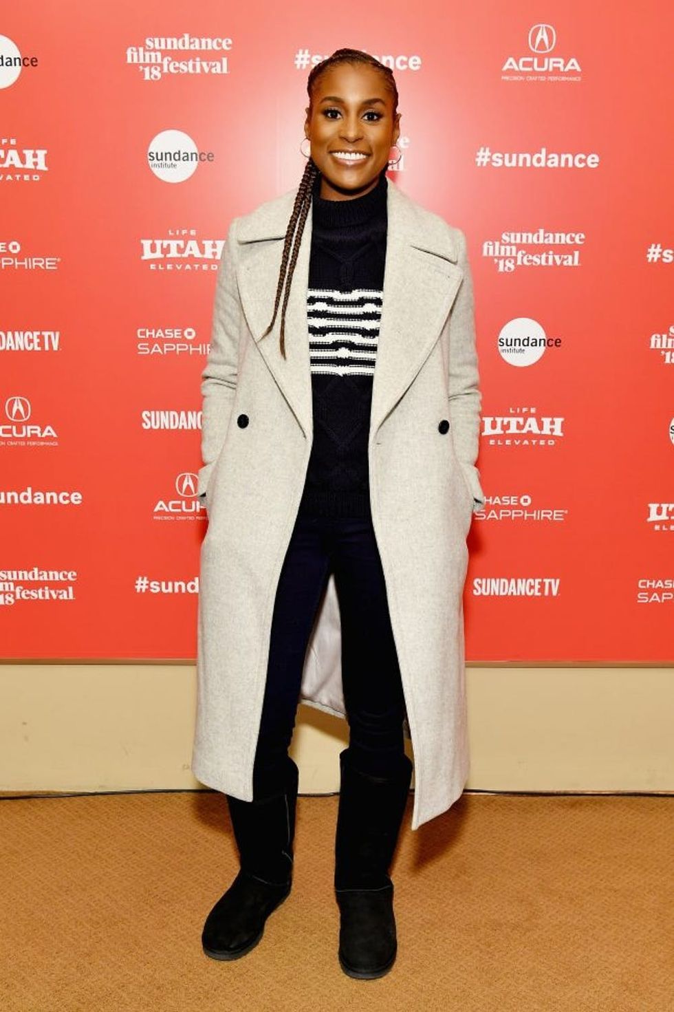 2. Sweats can be chic. Keeping cozy doesn’t have to mean parting ways with your style sensibilities. Take cues from the Awkward Black Girl star and stick to a neutral palette and clean lines for a getup that’s equal parts easygoing and elegant. (Photo via Dia Dipasupil/Getty)