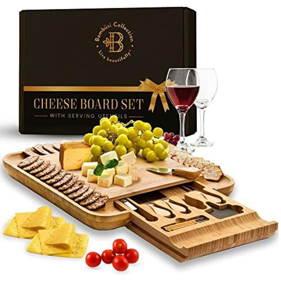 Gifting this Premium Cheese Board and Knife Set any time during the year would be a great move, but for the holidays. It's extra. This bamboo wood charcuterie board comes with a knife and serving set concealed inside the board for easy storage. This is an elegant gift that is bound to get lots of use.