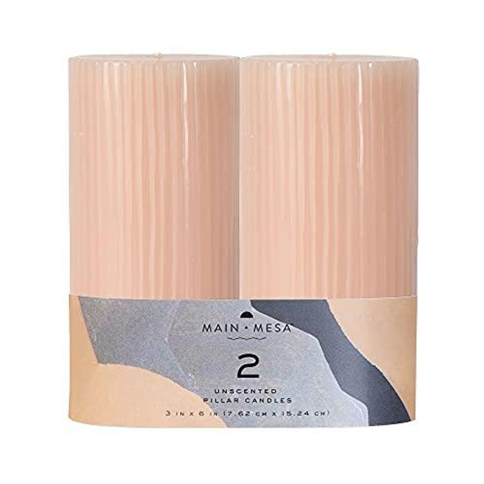Add these Main + Mesa Ribbed Pillar Candles to the set with the candle holders, and the combo is such a powerful decor piece for a room. From tablescaping to creating a decorative feature for an otherwise empty shelf or mantle. These candles are modern and chic and come in three glamorous colors.
