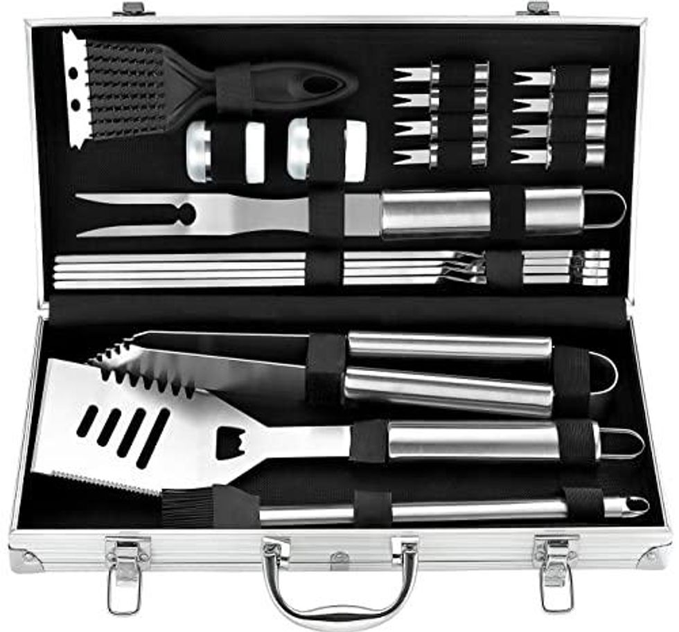 Grilling is an art, and this ROMANTICIST BBQ Grill Set is a 20-piece professional set for the meat lover in your home. This set is ideal as it comes in a portable case that can be used at home but is sleek enough to pack it up and take it along to the great outdoors.