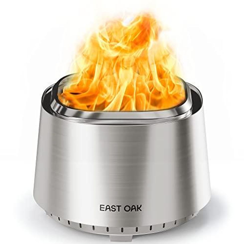 This EAST OAK 21 Inch Fire Pit will be ideal as a smokeless fire pit all year round. It's portable and works for wood burning on the patio or backyard. It comes complete with a fire poker and a stand, and this gadget will keep you comfortable when the weather and cool and the party keeps going outdoors.