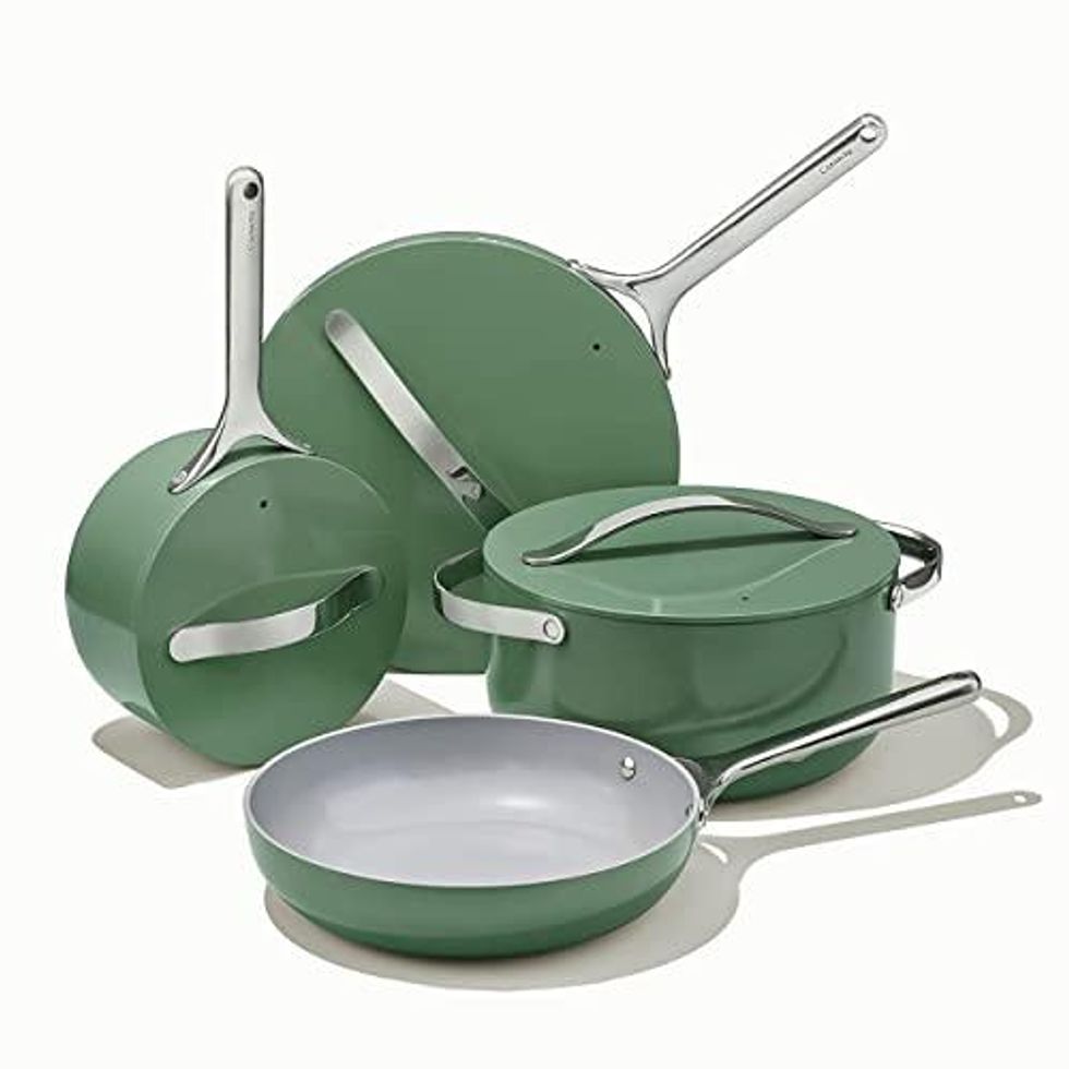 Talk about kitchen items that make us green with envy. This Caraway Ceramic Cookware Set is the stuff dreams are made of because this non-stick 12-piece set is modern and functional and has a sleek design to go with it. The best part is this set comes with a lid holder you throw over the back of the cupboard door, and it neatly stores the lids. Heavenly... isn't it?
