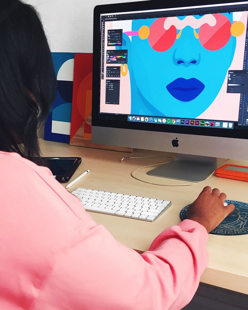 In college, I studied Fashion Marketing & Management at the Illinois Institute of Art - Chicago. I originally wanted to pursue a career in fashion styling, so I thought gaining a strong business background would be great for me. While I was in the program they taught us the basics of Adobe Photoshop, Illustrator & InDesign to create marketing materials and I quickly fell in love. With the help of online tutorials, I started using the programs on my own time to create wacky designs. From there, I slowly started to figure out that my true passion was art and design and that I had a natural talent for it.
