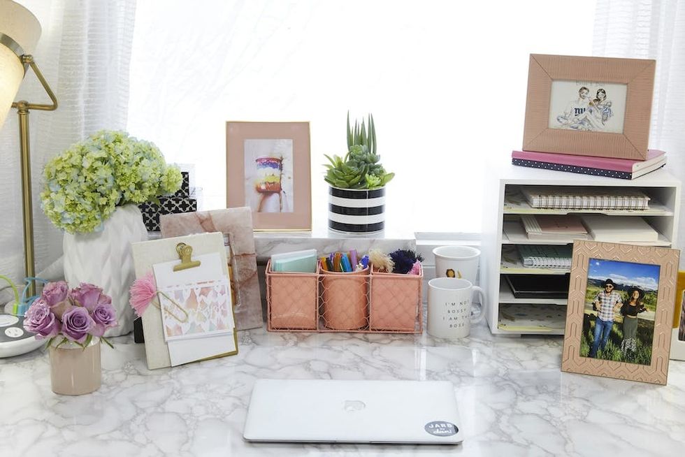 DB: Keeping it organized! I was really able to maximize my desk space by exploring the workspace section at HomeGoods for cute desktop accessories. I pulled several sets of organizers, shelves, cute notepads, pens, and markers for each desktop.