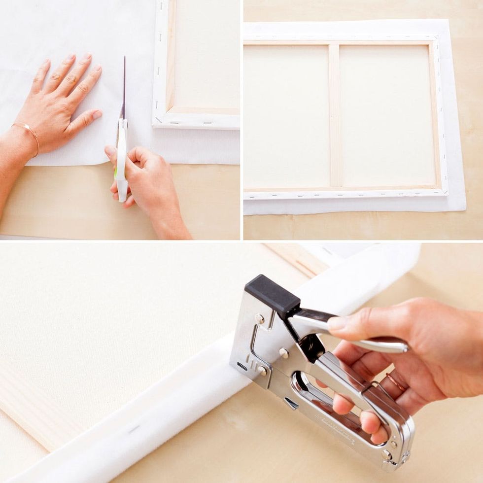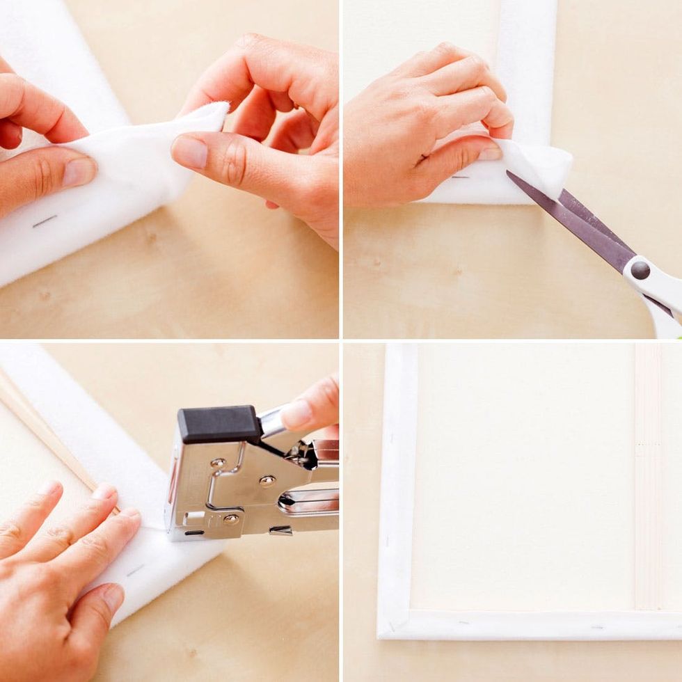 The corners can be a little tricky, so you may need to cut off additional material before stapling in.
