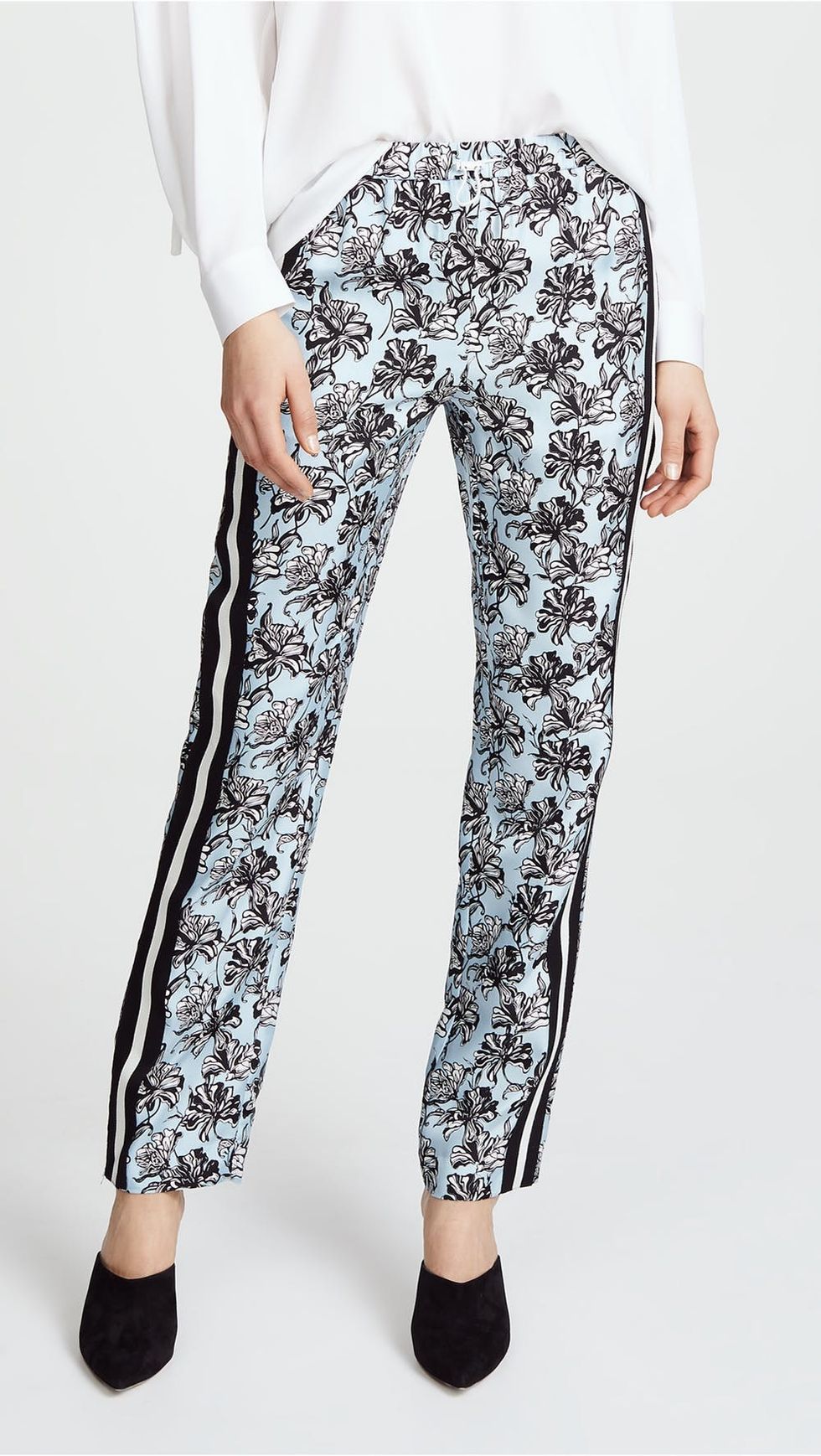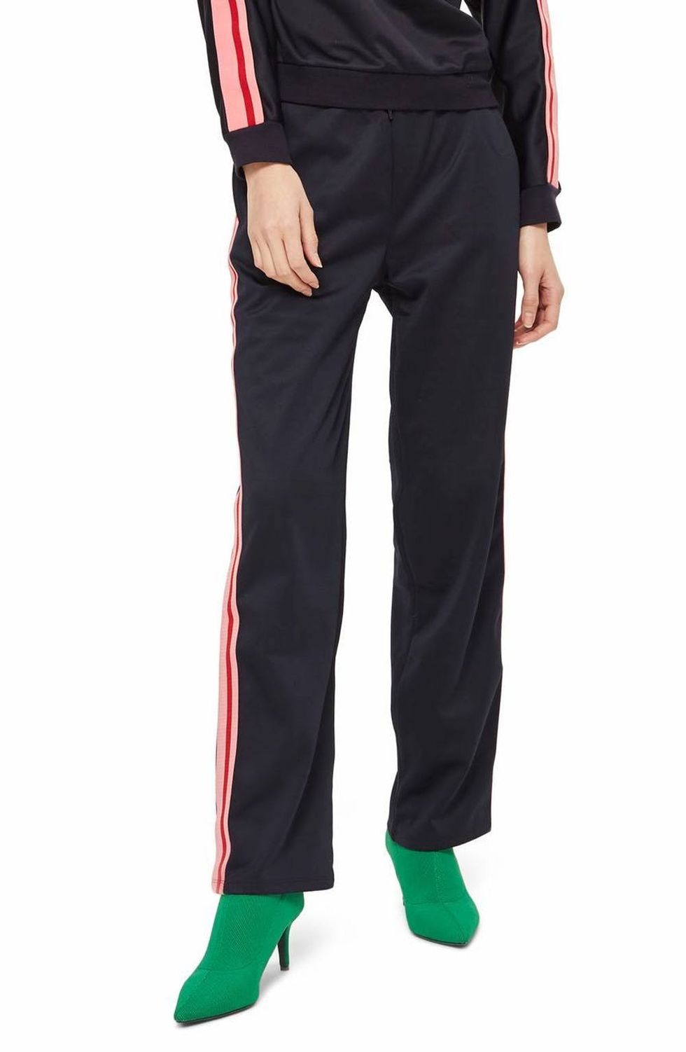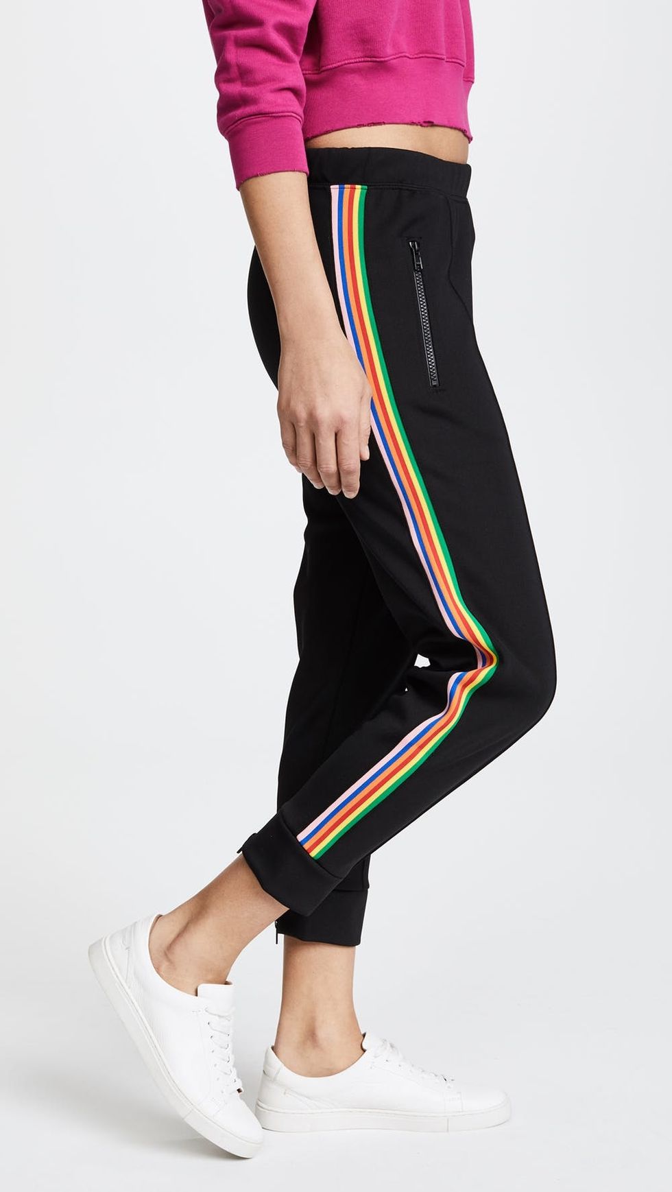 Hello, Moto: This unusual combo is really working. Try bright joggers with your favorite ankle boots and a motorcycle jacket. (Photo via Matthew Sperzel/Getty)