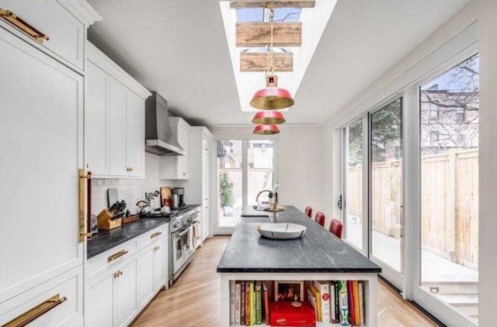 The kitchen has plentiful room for aspiring and skilled chefs to cook, but let’s admit it, even boiling a pot of water for ramen would be a joy in this space. With its floor-to-ceiling windows and skylight that spans the length of the room, it’s a kitchen we wouldn’t mind doing dishes in.