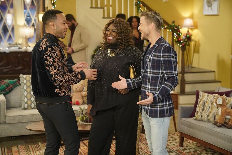 Retta and Derek Hough: The comedian and the DWTS star joined forces to present their audition to perform on Legend's upcoming tour. Retta sang operatically while Hough pirouetted and leapt through Legend and Teigen's living room. (Photo via Paul Drinkwater/NBC)