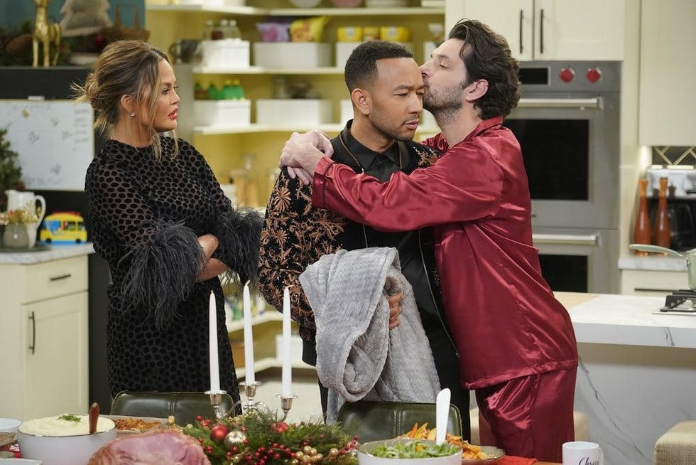 John Legend and Chrissy Teigen's star-studded NBC holiday special kicked off with a '90s sitcom-esque opening sequence featuring their adorable children, Luna and Miles — and things just got better from there. The couple treated us to some old-school variety show shenanigans, a competitive mac-and-cheese-off, and several scenes showcasing Luna, a star on the rise. They also gave us the added gift of cameos from several comedians, singers, dancers, and Kardashians. Click through to see every star who dropped in on the Legend house to spread a little holiday cheer. (Photos via Paul Drinkwater/NBC)
