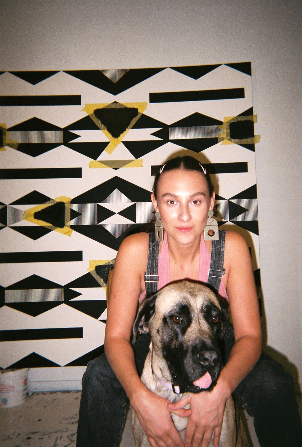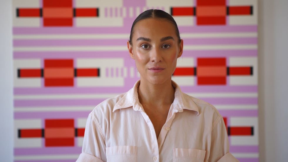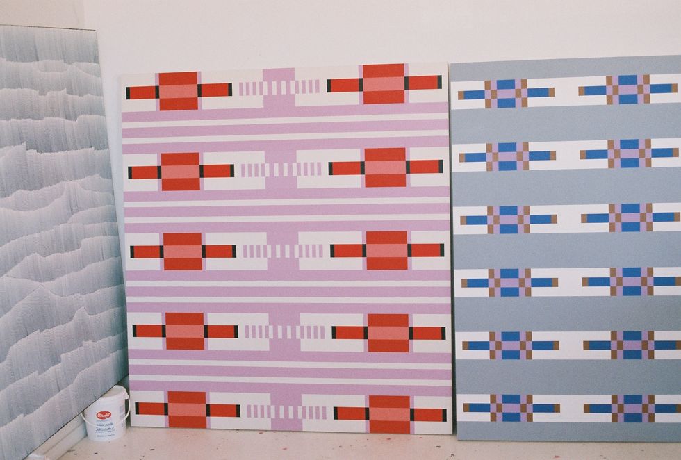 The process starts with me studying first, I do a lot of research in different Indigenous art collections, studying different historical objects, contemporary objects, bead work, basket weaving, all sorts of different things that I'm really intrigued by. And then I make my own pattern in Photoshop based off of those inspirations. Then I prepare my canvas, start that whole side of things, which is like the physical, almost labor part of it, which I really enjoy. I use my ruler and just all my measuring methods and jigs to get all those perfect symmetry in my work.