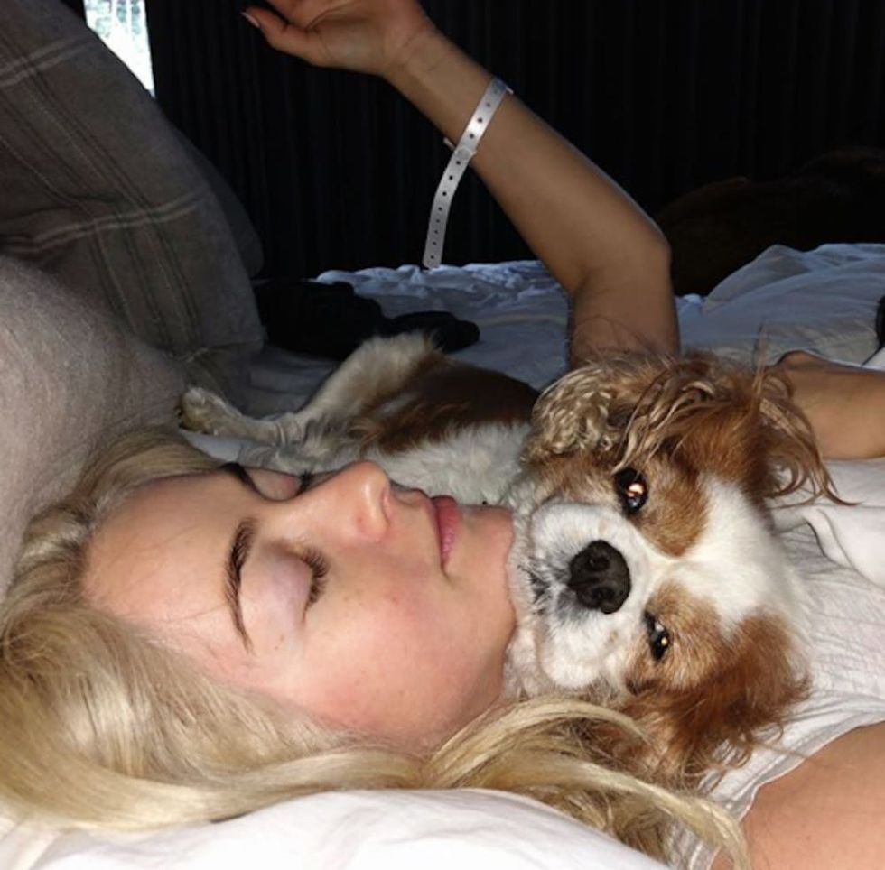 She followed it up with a near-identical shot taken in late 2017, writing, “9 years later and not much has changed… except the size of her little head. My second laparoscopy for my endometriosis was over the holidays, and of course, who was right by my side? My guardian angel Lexi. Who else feels like their dog is their guardian angel?… Lexi always knows when I’m sick, feeling sad, or when I need her, and I don’t even know it… Dogs are just so incredible!!! I love my Lexi soooo much!!!!”