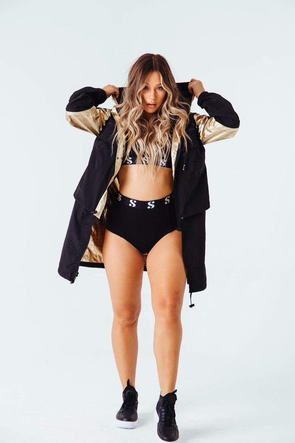 Serena Anorak ($215), Logo Bra ($45), and Logo Undie ($40): Serena Williams, our fave rockstar athlete and badass entrepreneur, is back at it with a new fashion collection and it's pure FIRE. Designed with accessibility and versatility in mind, the capsule features gorgeous and very trendy pieces — like this gold color-blocked anorak, edgy black boyfriend joggers, and a chain-strap denim dress.