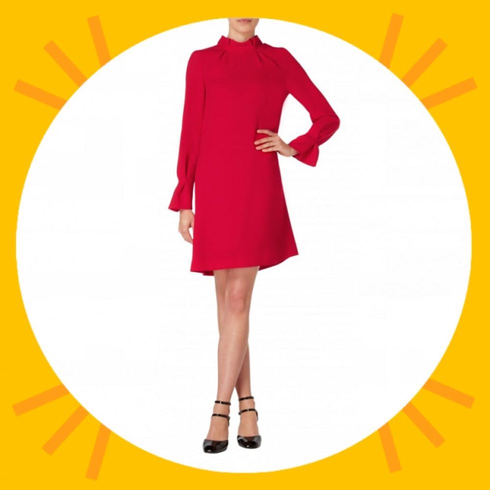 The coat is L.K. Bennett’s Delli Check Coat ($725), and it’s already sold out in the US. The dress comes from British brand Goat. Specifically, it’s the Elodie Tunic Dress, ($620), which surprisingly is still available.