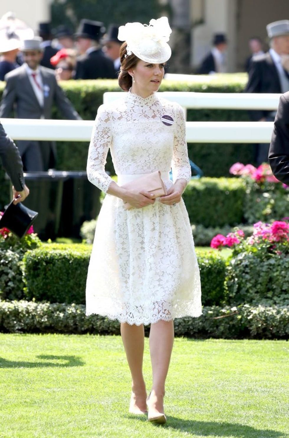 5. Royal Ascot: Take the Kentucky Derby, multiply its fanciness factor by 10, and you’ve got the Royal Ascot. Middleton stunned yet again in a white lace dress by — you guessed it — Alexander McQueen. The dress is strikingly similar to the one she wore to the Royal Ascot last year. (Photo via Chris Jackson/Getty)