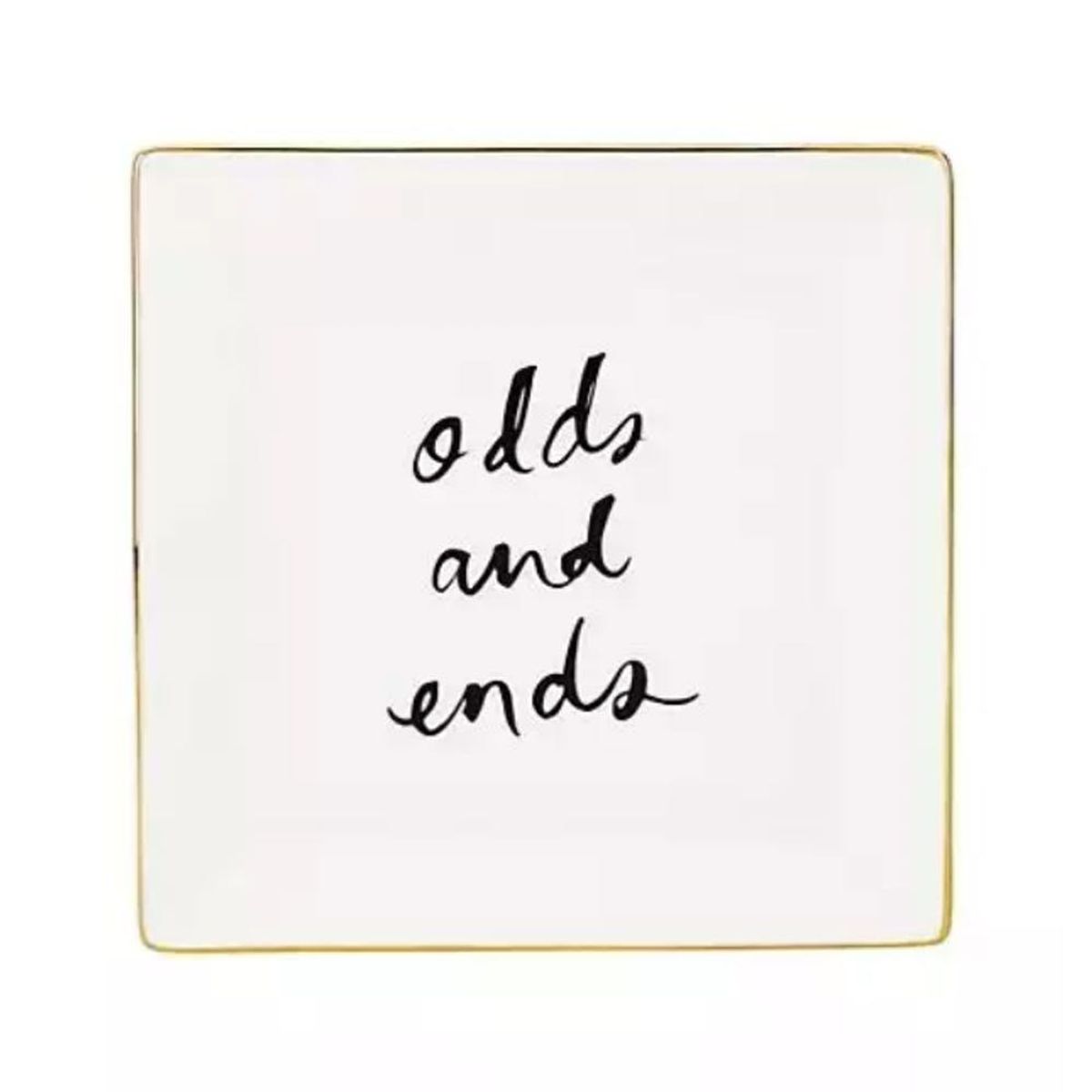 1. Using the black porcelain paint pen, write “odds and ends” in the center of the dish.
