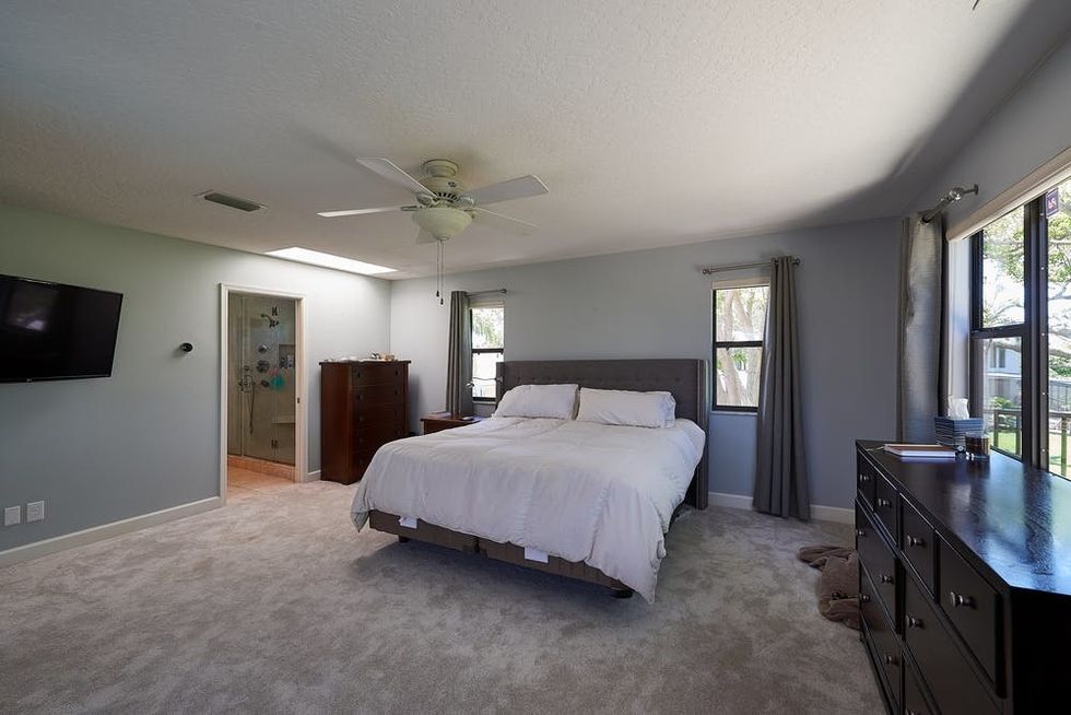 In the latest installment of the video series My Houzz, which features celebrities surprising their families with upgraded spaces, Upton tackled sister Christie’s inner sanctum. The selected rooms had plenty of square footage, but the master bedroom and bath were really a blank slate at best. “Christie always takes care of everyone around her and puts herself last, so I wanted to do something meaningful for her,” says Upton of the remodel. Upton worked with local design-build firm Motivo Home to transform both areas into something that would inspire chill vibes and a bit of pampering.