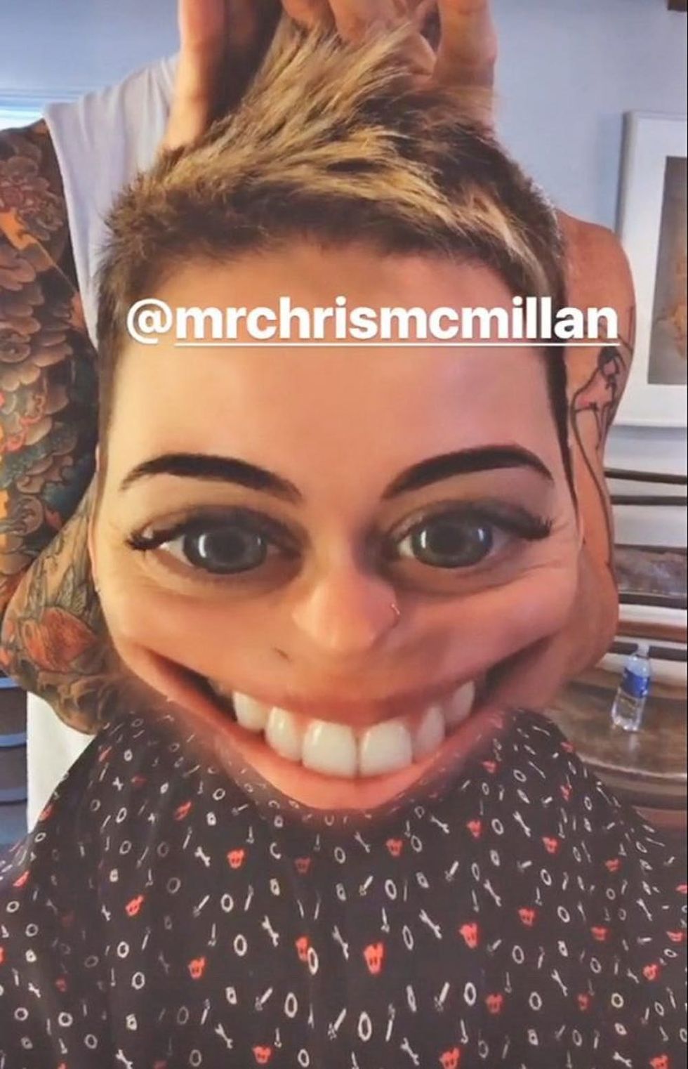 On Monday, Perry shared her new hairstyle (with a goofy, face-morphing filter of course) on Instagram Stories, saying, “When your hair is shorter than your eyelashes, you know you’ve just gotten a cut from Chris McMillan.” McMillan, who is responsible for Cyrus’s dramatic chop back in 2012, previously cut Perry’s pixie in March.