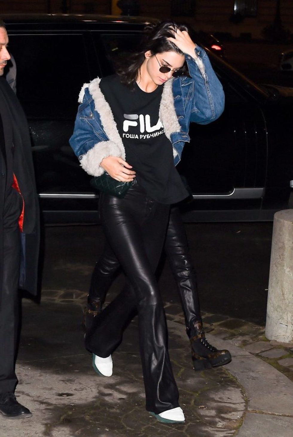 She was spotted with the pack again leaving a rehearsal for Alexandre Vauthier’s Spring/Summer 2017 show while wearing a denim jacket with a shearling lining, a Gosha Rubchinskiy x FILA t-shirt, black leather pants and the infamous quilted Chanel fanny pack slung to the side.