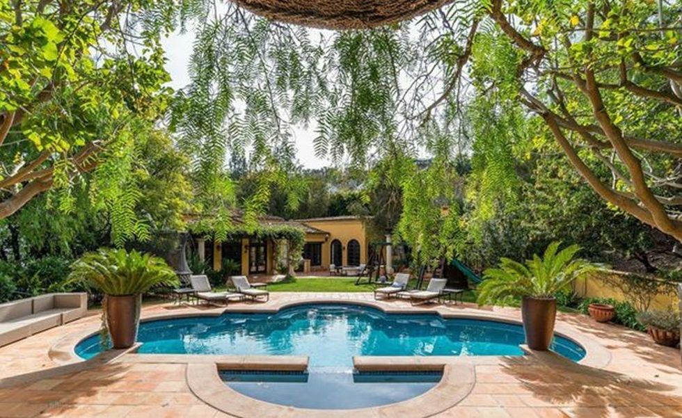 Built in 1991, the gated, Spanish-style home features over 6,000 square feet for the five-foot, 10-inch model to stretch her legs (and accommodate her growing number of nieces and nephews). Highlights include five bedrooms, six bathrooms, a movie theater, a tennis court, and Insta-worthy interiors complete with fireplaces, arched walkways, and a wall of doors that lead to super lush (AKA paparazzi-blocking) landscaping.