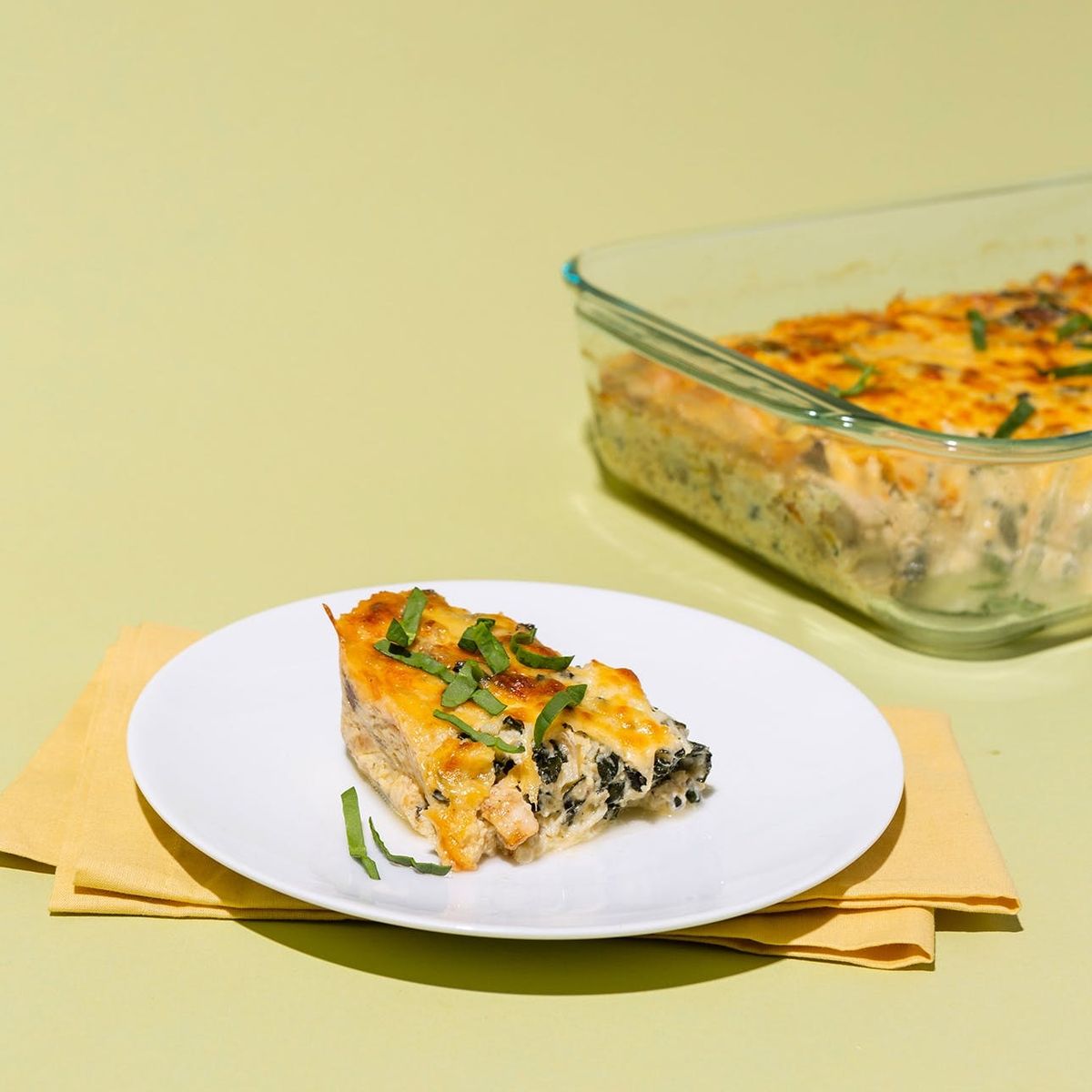 Prepare a 9×13-inch baking dish by spraying it with a nonstick spray. Preheat oven to 350°F.