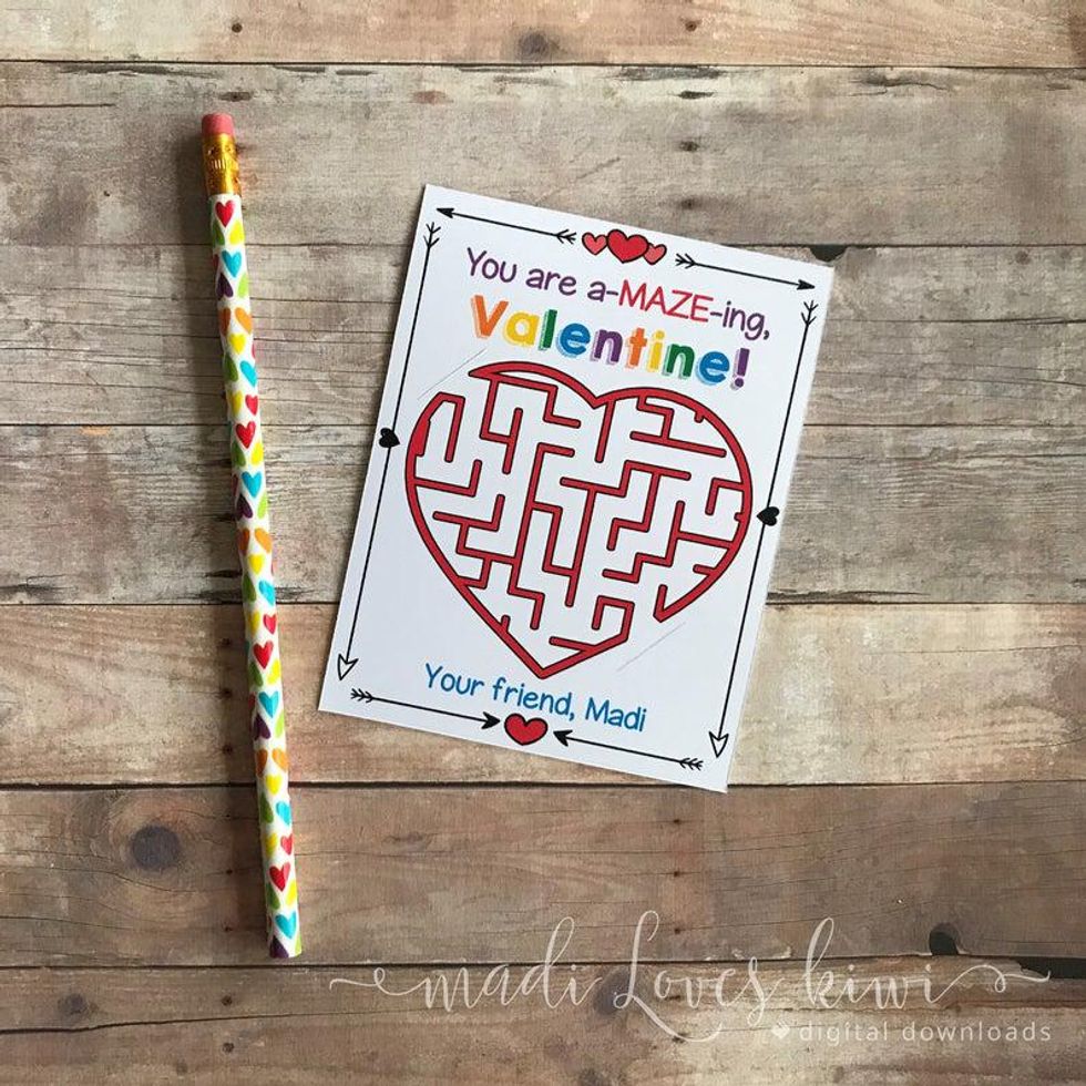 We love this printable (and interactive) Valentine's Day card! It holds a pencil between the slots and your little can add one for her fave people. (via MadiLovesKiwi)